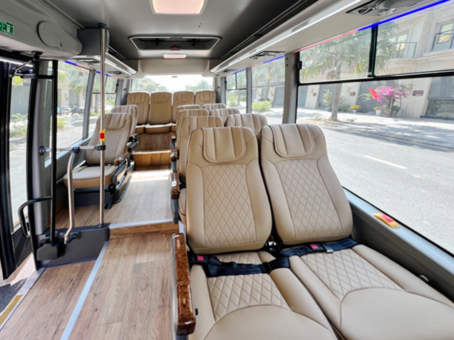 Cửa điện 1 hoặc 2 cánh; cấu hình linh hoạt theo nhu cầu khai thác. Số lượng hành khách chuyên chở: 20-24 |