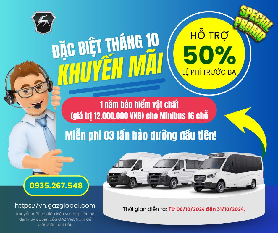 Gaz Việt Nam xin trân trọng giới thiệu chương trình khuyến mãi tháng 10/2024 với hàng loạt ưu đãi hấp dẫn dành cho các dòng xe thương mại Gaz.